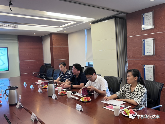 對于領導們的到來,我司表示熱烈的歡迎。朱總從公司概況、發展歷程、工程業績、企業文化、人才體系、企業管理、資質與榮譽、工程技術、設備管理、市場情況等方面,詳細介紹了中核華興達豐的發展狀況及規劃,立足專業化、互聯網化,加強升級管理。