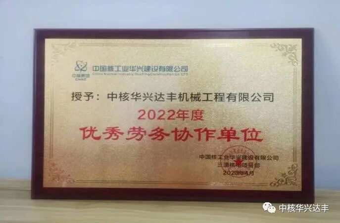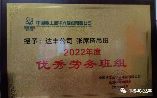2023年4月,中核華興達豐三澳核電項目榮獲中國核工業華興建設有限公司項目部授予“2022年度優秀勞務班組”、“2022年度優秀勞務協作單位”稱號。