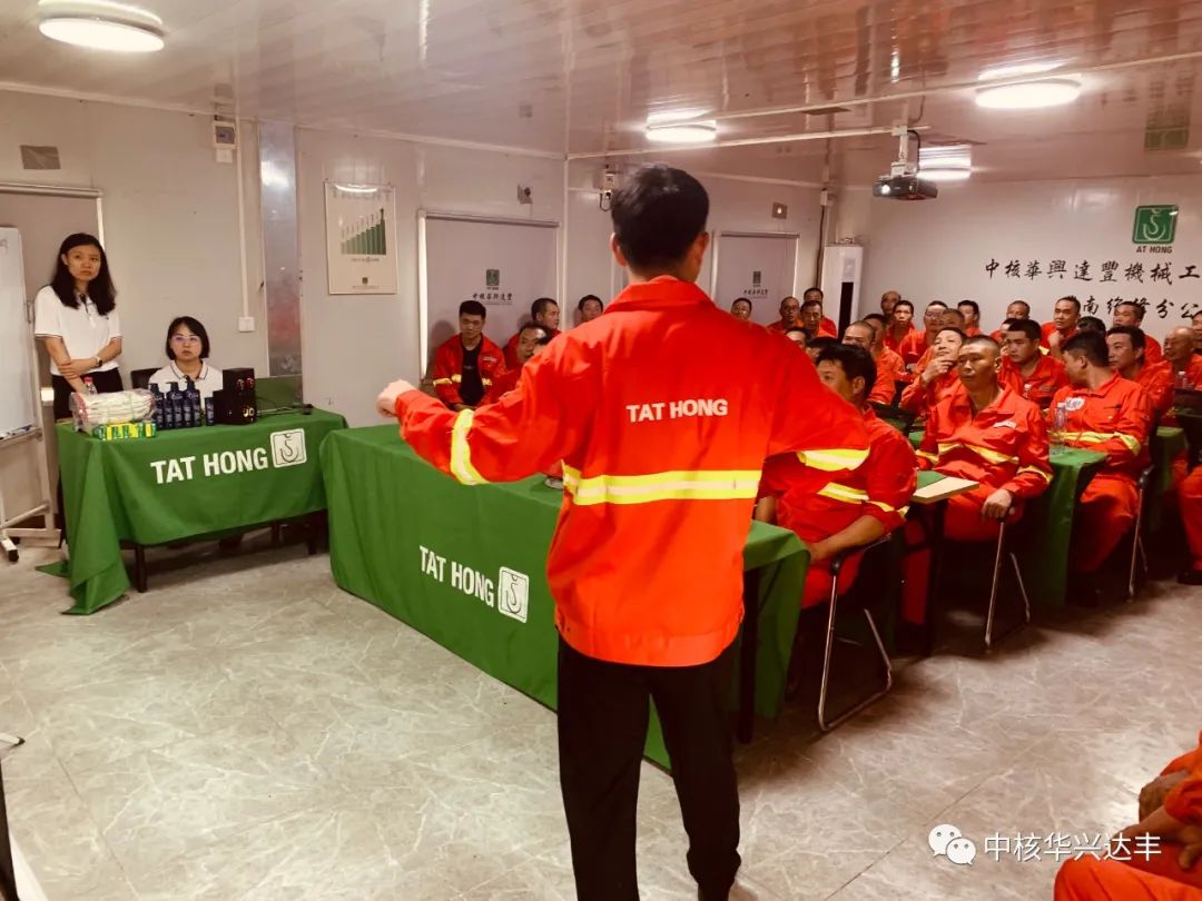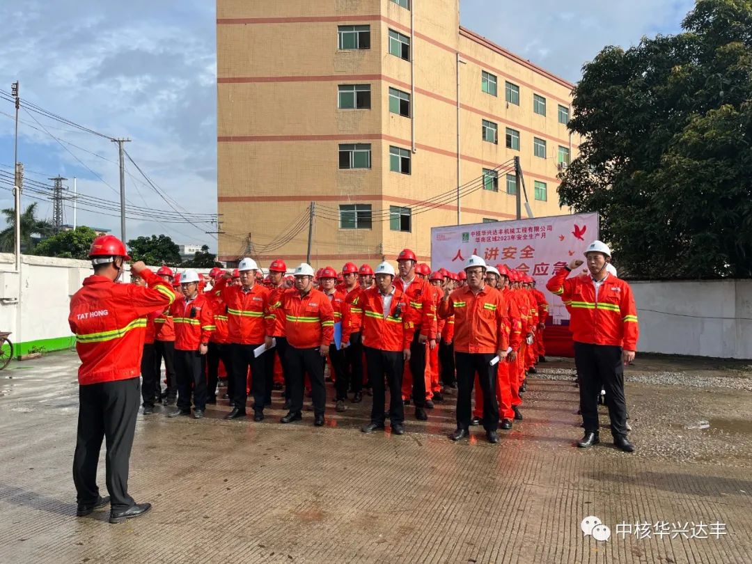 為貫徹落實以“人人講安全,個個會應急”為主題的“安全生產月”,以管理提升活動為契機,提高安全生產管理水平,進一步落實各級安全生產責任,2023年6月18日上午,中核華興達豐華南區域在華南維修分公司東莞常平堆場舉行2023年度安全月系列活動,中核華興達豐常務副總經理、華南區域總經理于春雷,安全總監萬沖,廣州分公司經理徐峰,深圳分公司經理王鶴達,珠海分公司經理武守斌,佛山分公司經理王輝,惠州分公司經理武常贊,華南維修分公司副經理陳尊雷及各分公司代表人員參加本次活動。本次活動由華南區域安全質量部副經理呂士靜主持,共分為六個部分:第一部分邀請于總做華南區域安全月活動開幕致辭;第二部分安全生產月活動宣誓、簽字儀式;第三部份華南區域各分公司進行安全月應急預案演練比賽;第四部分專題學習2023年安全生產月教育片《安全的聲音》、安全知識競賽;第五部分特邀行業專家郭寒竹教授對全體安管人員做專項安全培訓。第六部分于總對安全月活動做最后總結。
