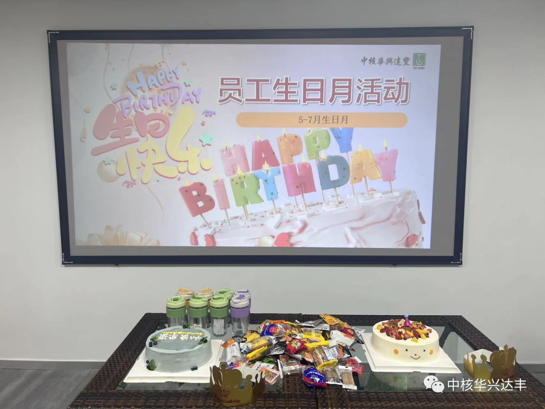 中核華興達豐會在每個季度用心籌劃溫馨精彩的員工生日會,精心布置的現場、琳瑯滿目的美食、美味可口的蛋糕、精致的禮物等,生日會充滿了儀式感和驚喜。